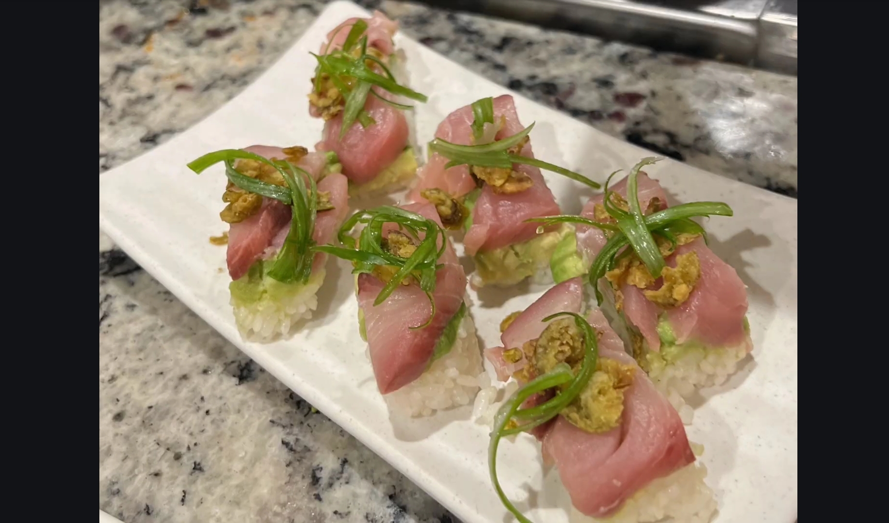 - Tuna Tartare Ahi tuna, avocado, tobiko, sesame oil, wonton crisps